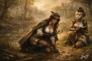 Faisant suite a mes dessins des aventures de Hortense Poirot, je me suis lancé dans un adaptation steampunk, victorienne et pin-up de Sheila Holmes et de Cassandra Watson.