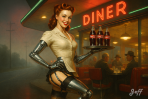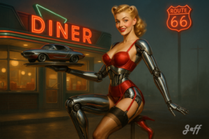 Pin-Up 13 – Rétrofuturisme. Jeff avec Gemini, septembre 2025.
