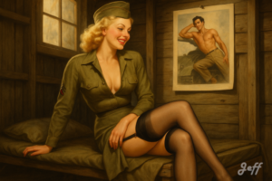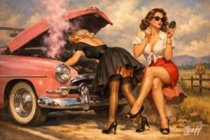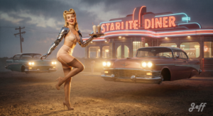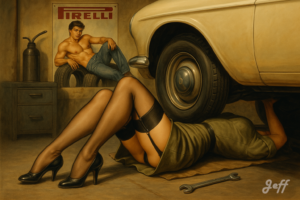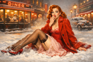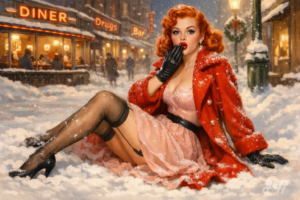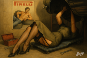 Les pin-up m’ont toujours fait rêver. J’avoue une certaine frustration de ne pas avoir pu photographier des pin-up dans le monde réel. Je me rattrape avec l’AI.