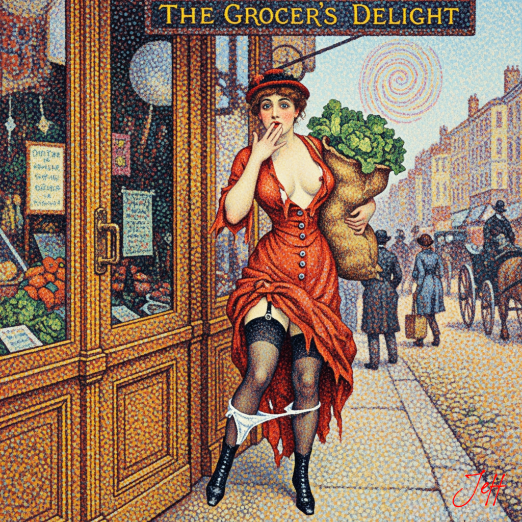 Pin-Up 003 - Pointillisme. Jeff avec Gemini, aout 2025.