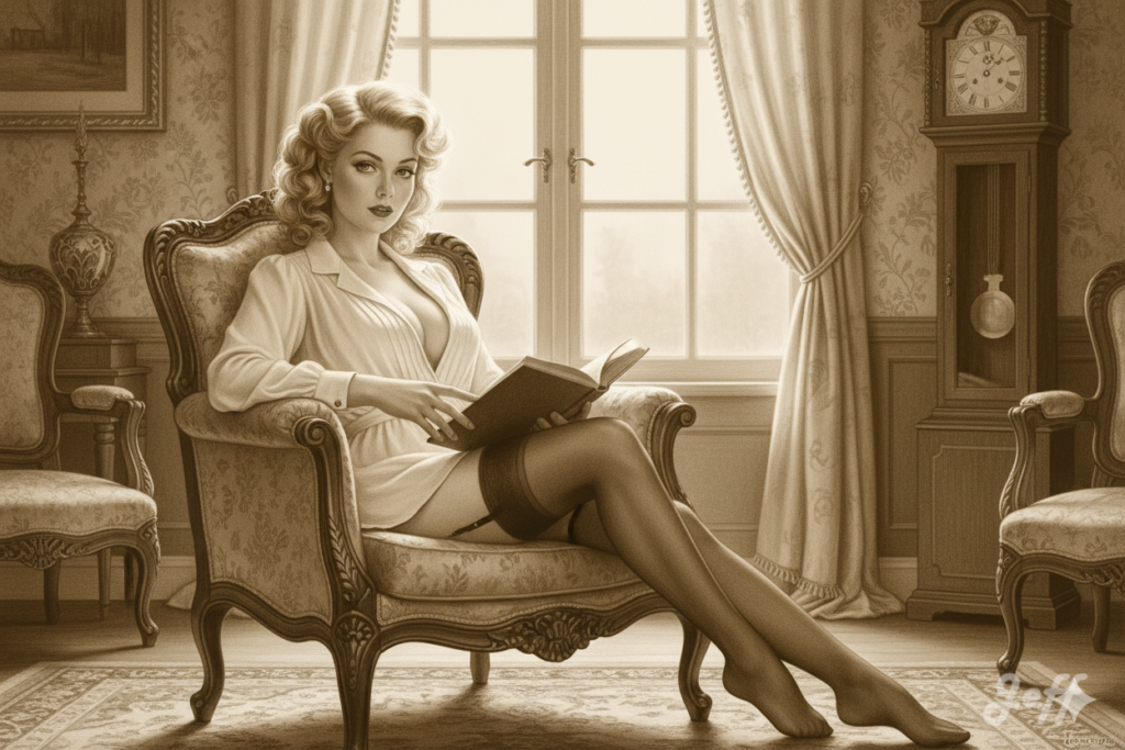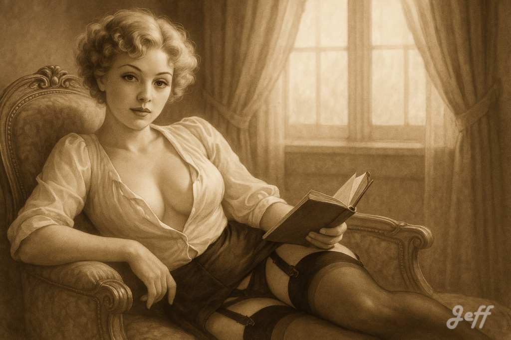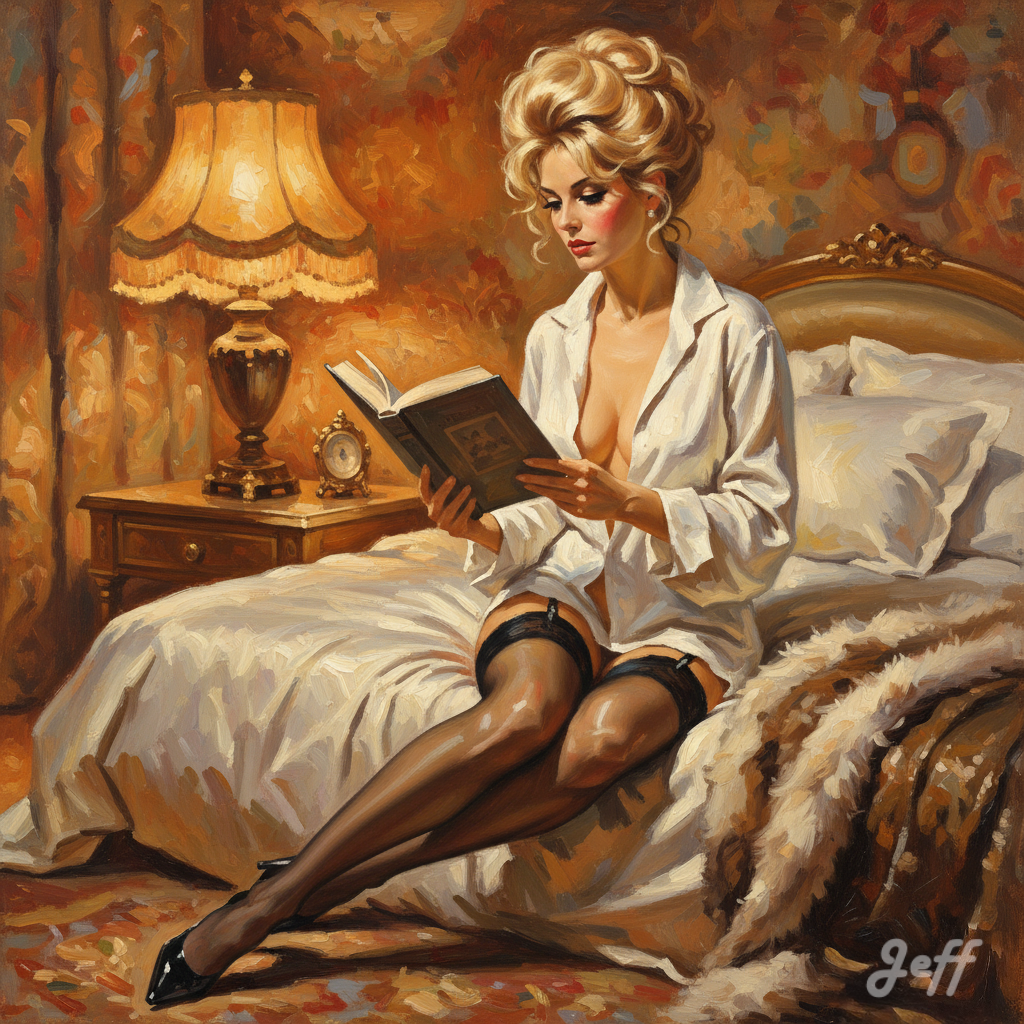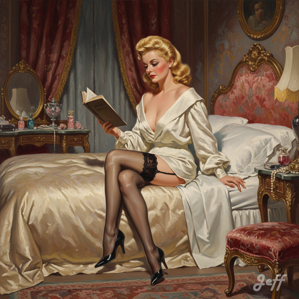 Lorsque l’image de la pin-up est associée à la lecture, elle apporte une nuance d’intellectualisme ou d’intimité. Cela peut servir à humaniser le personnage, le montrer dans une posture de loisir plus ordinaire ou cultivée, tout en conservant son attrait visuel.
